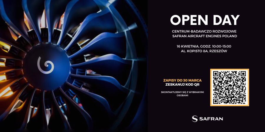Safran Aircraft Engines Poland zaprasza studentów na OPEN DAY organizowany w Centrum Badawczo-Rozwojowym w Rzeszowie w dniu 16 kwietnia 2026.