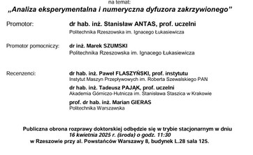 Zapraszamy na publiczną obronę rozprawy doktorskiej mgr inż. Kamila SZCZERBY, która odbędzie się w dniu 16.04.2025 w sali Rady Wydziału Budowy Maszyn i Lotnictwa Politechniki Rzeszowskiej (L-125)