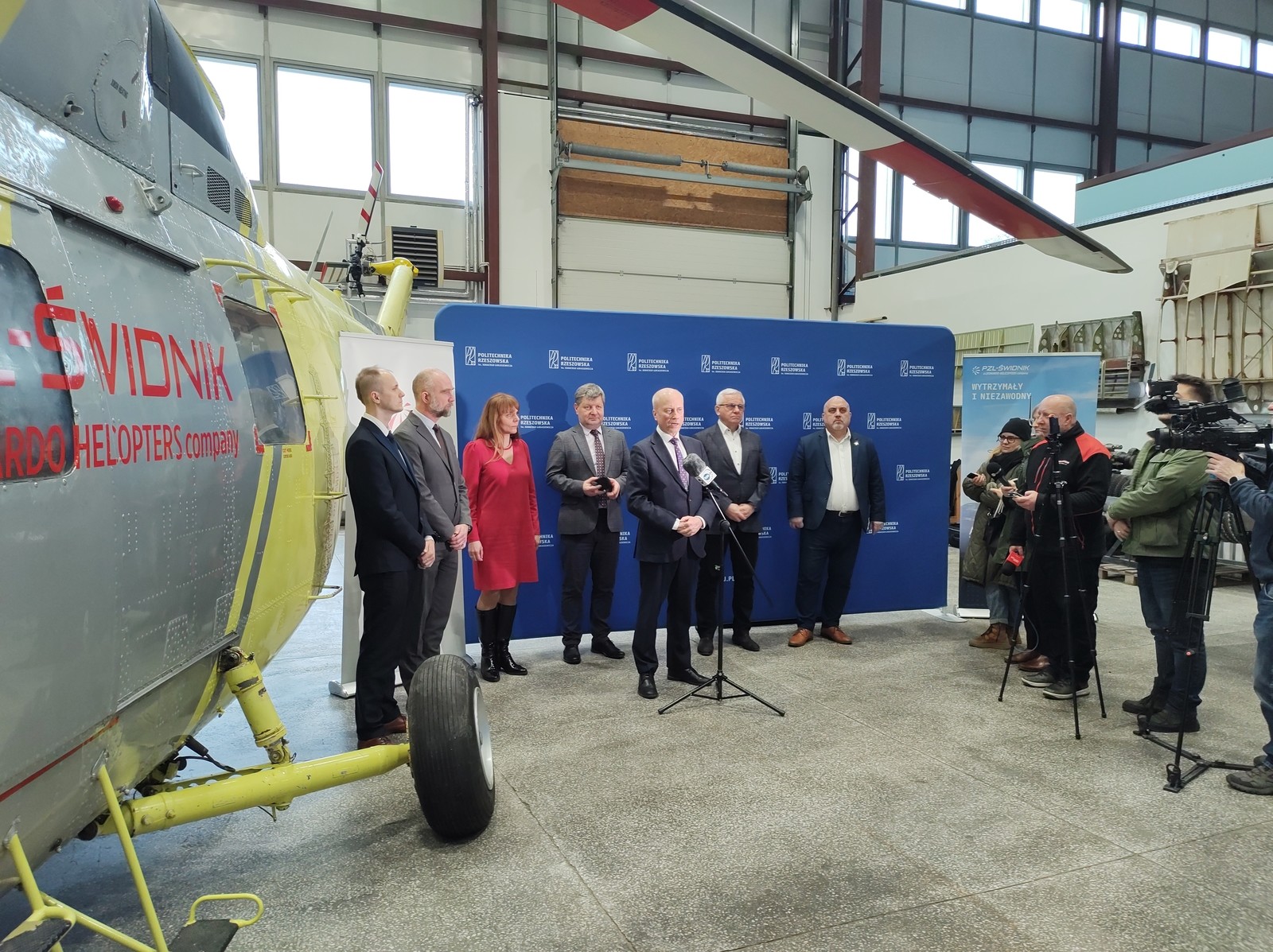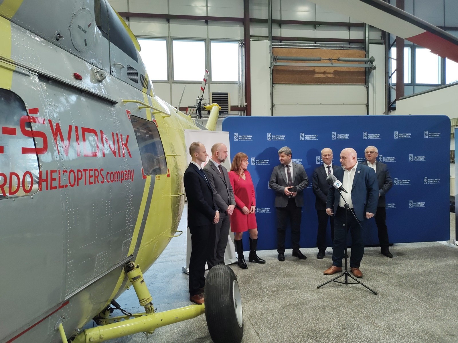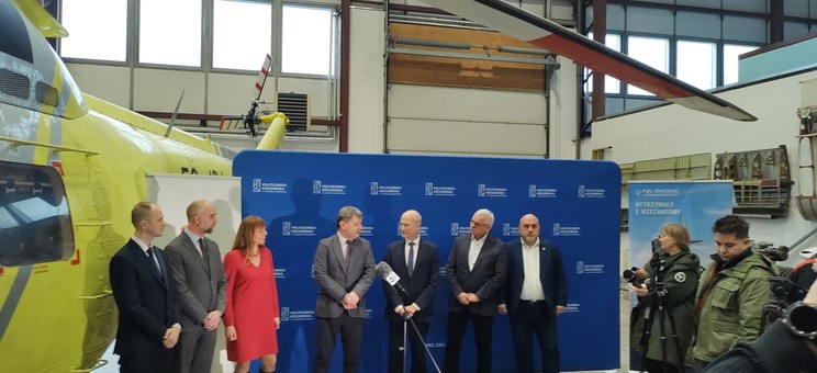 W dniu dzisiejszym 5.02.2024 odbyło się oficjalne przekazanie śmigłowca PZL W-3 Sokół przez PZL Świdnik dla Politechniki Rzeszowskiej. W uroczystości przekazania uczestniczyli ze strony PZL Świdnik: Lucyna Pasternak – Dyrektor Zasobów Ludzkich, Tomasz Bilski – Dyrektor Projektowania, Mateusz Kulas – Kierownik Inżynierii Obsługi Śmigłowców oraz ze strony Uczelni: J.M Pan Rektor Politechniki Rzeszowskiej prof. dr hab. inż. Piotr Koszelnik, Prorektor ds. rozwoju i współpracy z otoczeniem – prof. dr hab. inż. Jarosław Sęp, Dziekan Wydziału Budowy Maszyn i Lotnictwa dr hab. inż. Adam Marciniec prof. PRz oraz Kierownik Katedry Inżynierii Lotniczej i Kosmicznej dr hab. inż. Andrzej Majka prof. PRz.