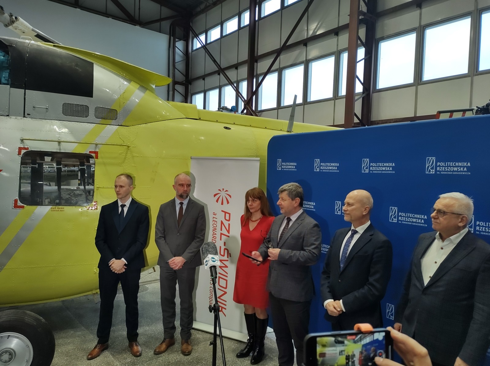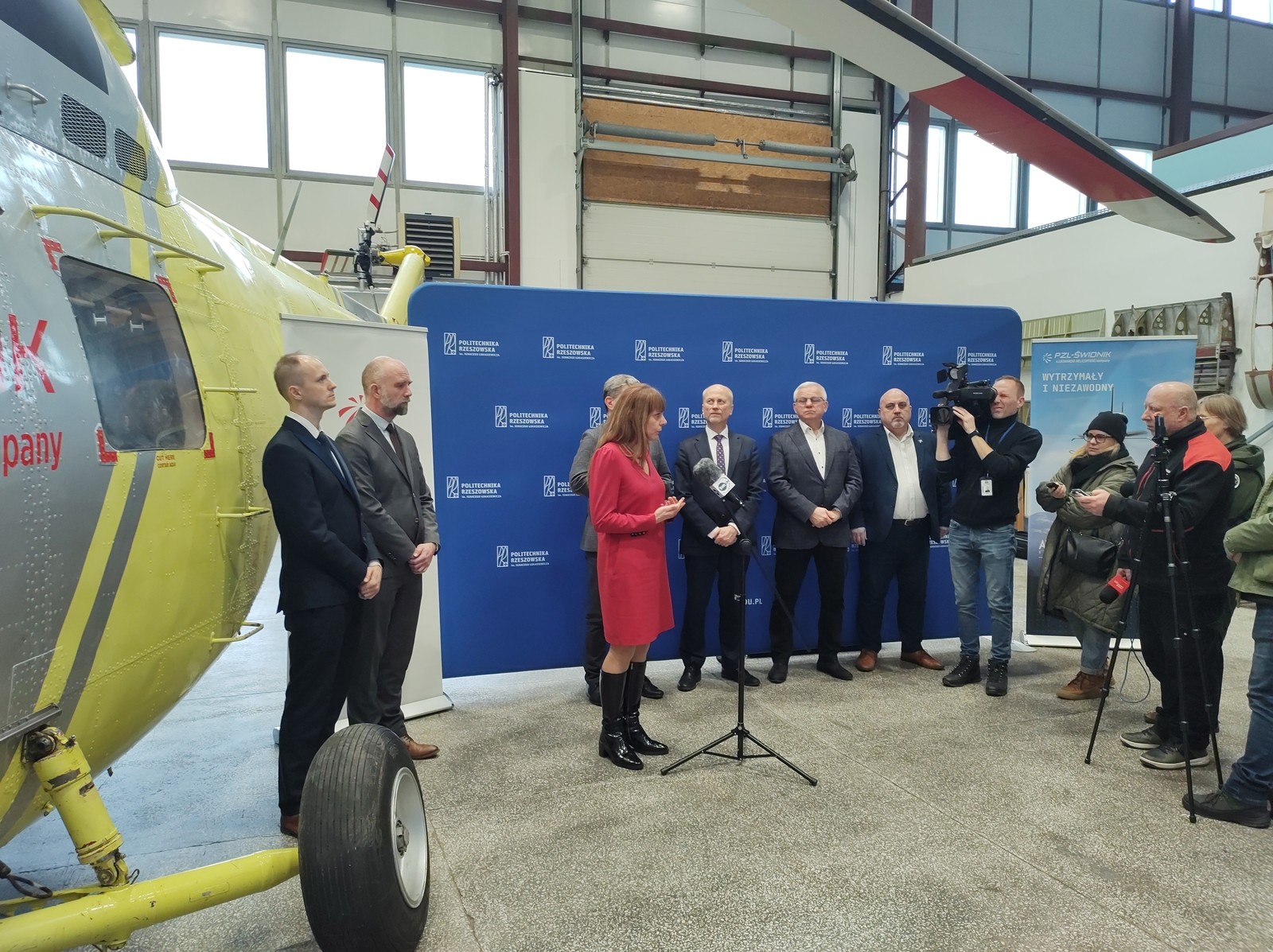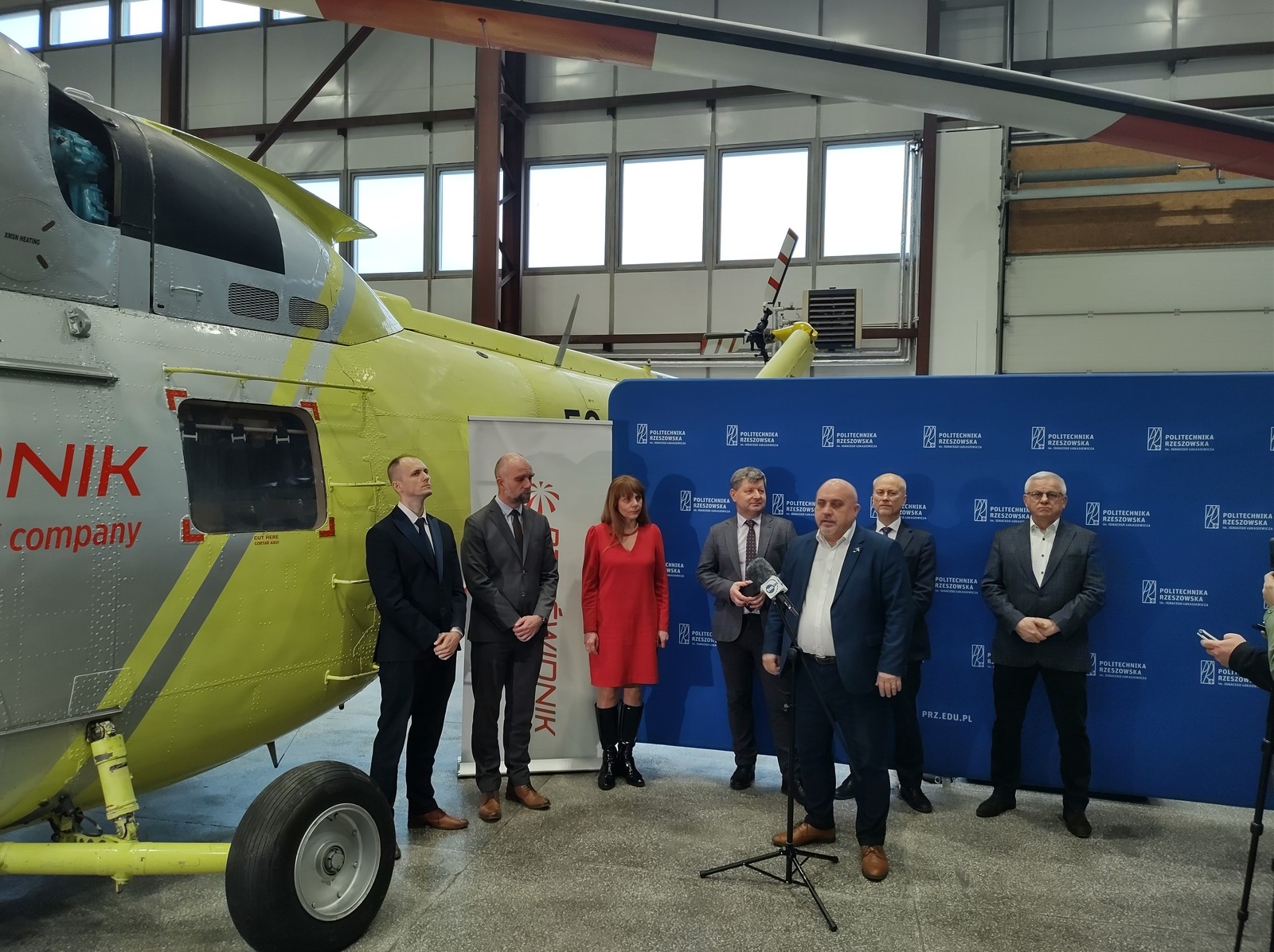 W dniu dzisiejszym 5.02.2024 odbyło się oficjalne przekazanie śmigłowca PZL W-3 Sokół przez PZL Świdnik dla Politechniki Rzeszowskiej. W uroczystości przekazania uczestniczyli ze strony PZL Świdnik: Lucyna Pasternak – Dyrektor Zasobów Ludzkich, Tomasz Bilski – Dyrektor Projektowania, Mateusz Kulas – Kierownik Inżynierii Obsługi Śmigłowców oraz ze strony Uczelni: J.M Pan Rektor Politechniki Rzeszowskiej prof. dr hab. inż. Piotr Koszelnik, Prorektor ds. rozwoju i współpracy z otoczeniem – prof. dr hab. inż. Jarosław Sęp, Dziekan Wydziału Budowy Maszyn i Lotnictwa dr hab. inż. Adam Marciniec prof. PRz oraz Kierownik Katedry Inżynierii Lotniczej i Kosmicznej dr hab. inż. Andrzej Majka prof. PRz.